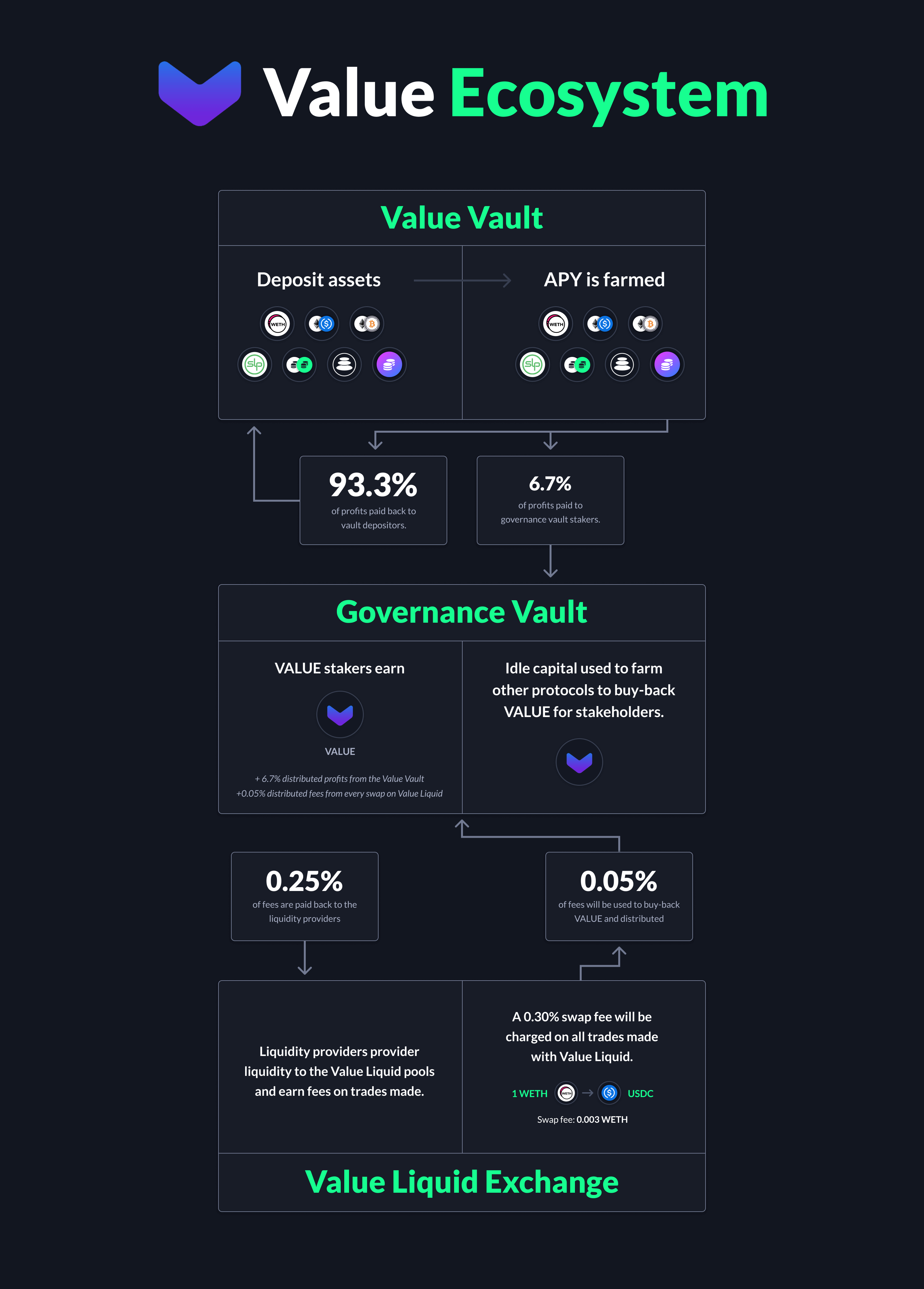 The Governance Vault also gets 33% of the swap fees from Value Liquid.