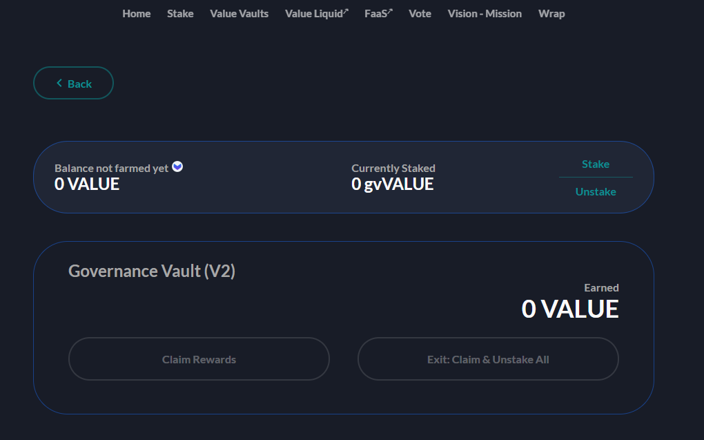 The Governance Vault is open to all users that stake the Value token, in the Governance Vault. Once staked you will receive Governance rewards and be able to vote in the governance votes. See Governance Vault staking guide.